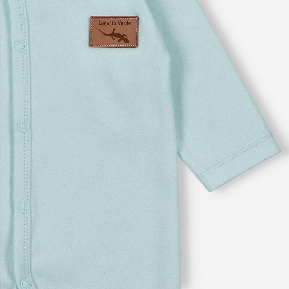 Klasyczny pajac niemowlęcy uszyty z bardzo przyjemnej w dotyku bawełny premium. Bezniklowe napy i delikatne, miękkie lamówki to dodatkowe atuty ubranka. Wklejana metka zamiast wszywki – zapobiega podrażnieniom skóry.