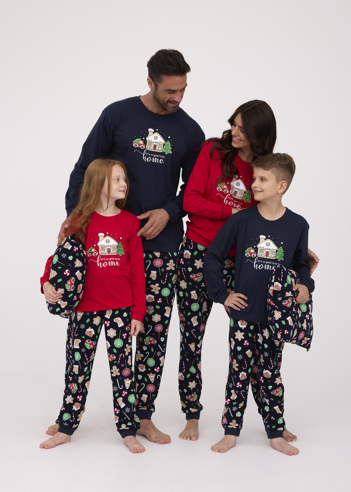 Wygodna piżama wykonana z wysokiej jakości wyjątkowo miłej i miękkiej bawełny. Bluzka z długim rękawem, zakończonym ściągaczem, dekolt okrągły. Do kompletu długie spodnie