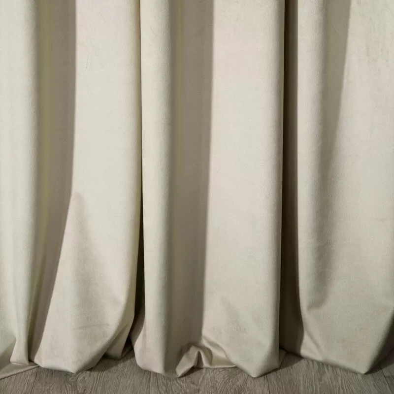 Zasłona sprawdzi się w nowoczesnych wnętrzach. Puszysta, dobrze kryjąca aksamitna tkanina o gęstym splocie dodaje wnętrzu niezwykłego szyku. Zastosowana w zasłonie taśma sprawiają, że zmiana dekoracji trwa tylko krótką chwilę, a po zawieszeniu tkanina układa się łagodnie spływając z karnisza.