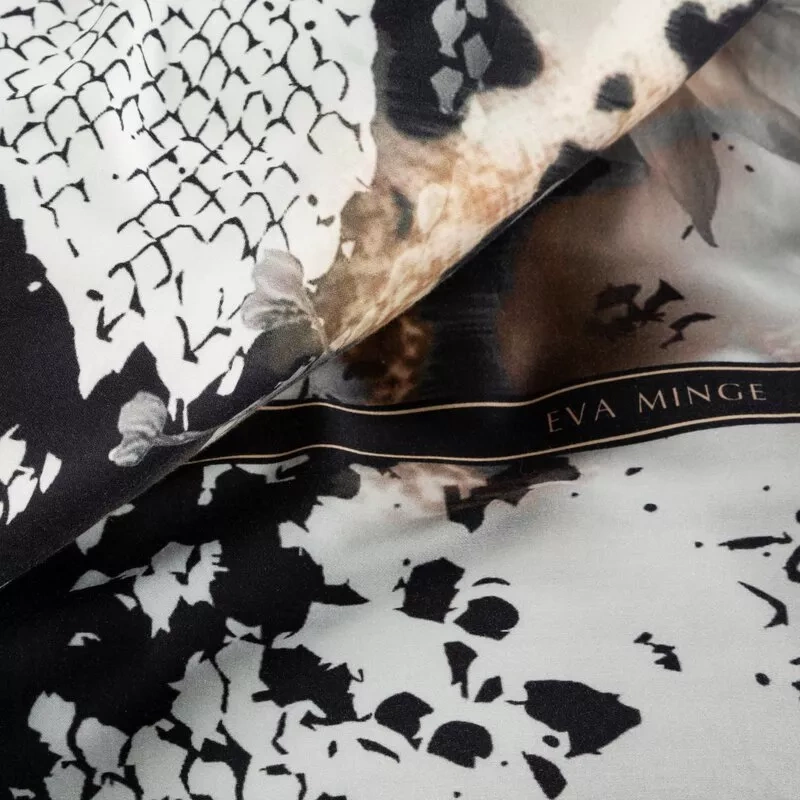 Pościel satynowa posiada delikatną miękkość oraz jedwabisty połysk, a jej dodatkowym atutem jest łatwość prasowania oraz wysoka odporność na uszkodzenia. Wierzchnia strona posiada nadruk w żywych, kontrastujących barwach, zaś spód zaprojektowano w jednolitym kolorze. Najwyższa jakość naturalnych tkanin, nietuzinkowe, odważne desenie i motywy zgodne z najnowszymi, światowymi trendami, to wyróżniki najnowszej kolekcji pościeli sygnowanej przez Evę Minge. Trwałość materiałów i dokładność wykończenia składają się na niebywałą jakość pościeli. Kolory są wyraziste i zachowują swoją pierwotną barwę nawet po wielu praniach.