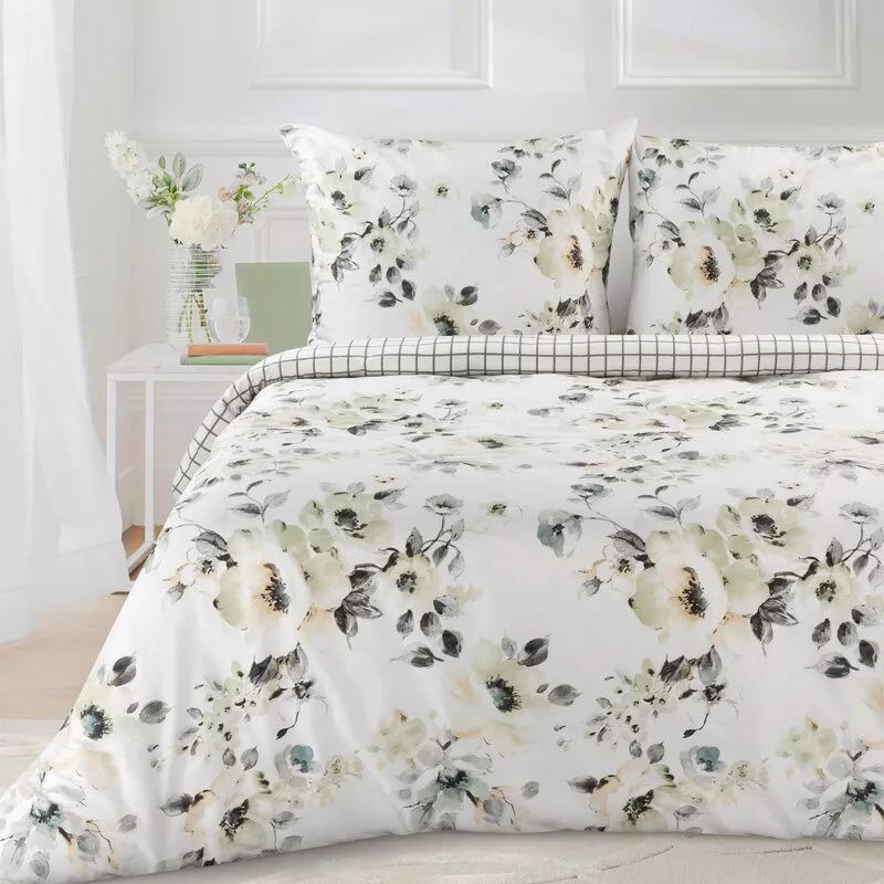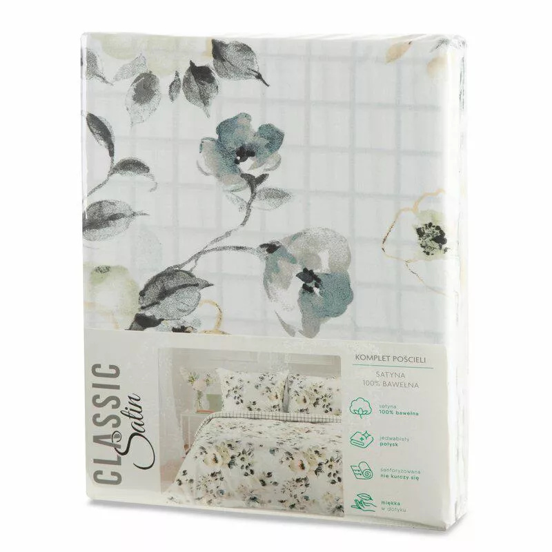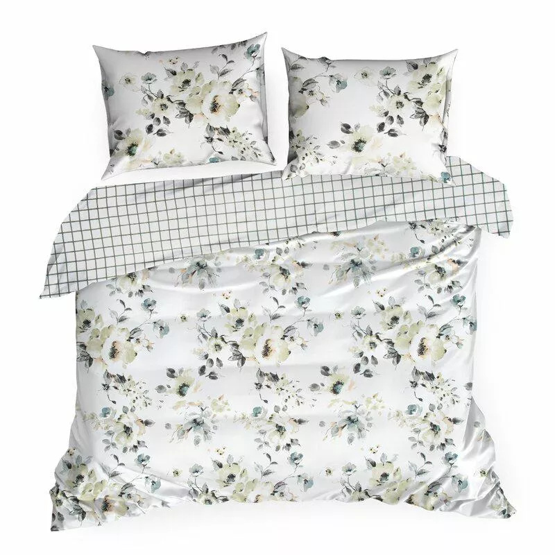Pościel satynowa Spring 32 Kwiaty Eurofirany biały/miętowy