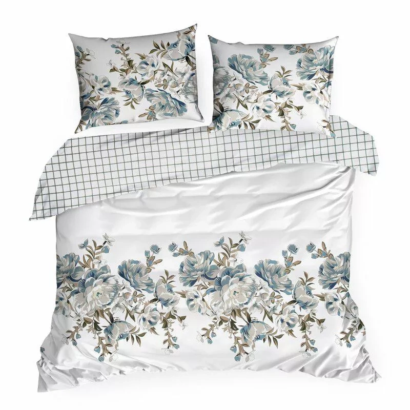 Pościel satynowa Spring 40 Kwiaty Eurofirany biały/turkusowy