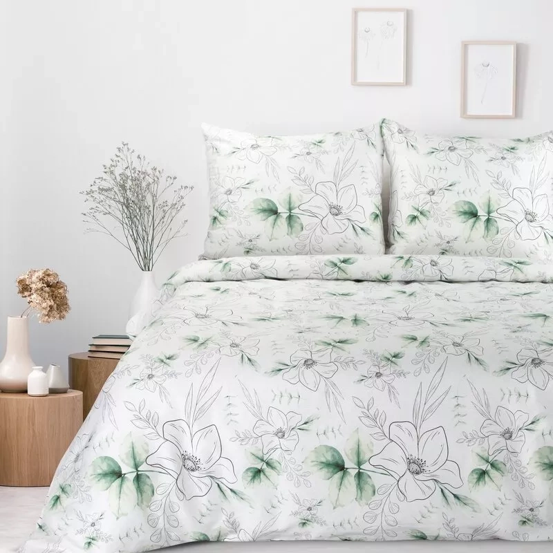 Pościel satynowa Spring 28 Kwiaty  Eurofirany biały/zielony