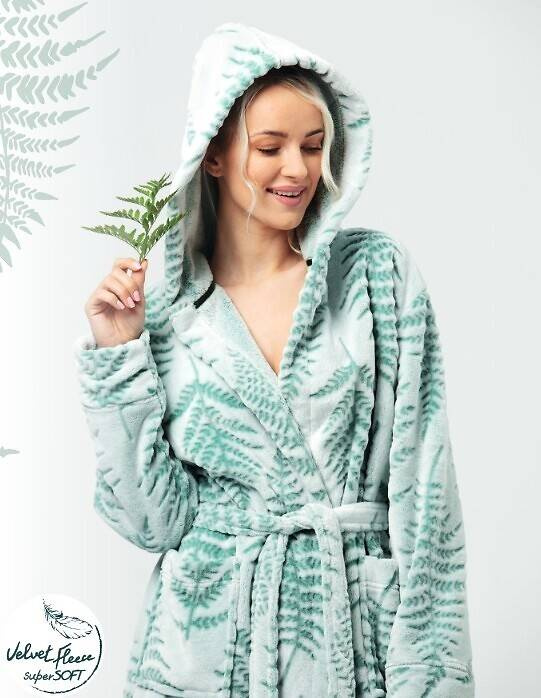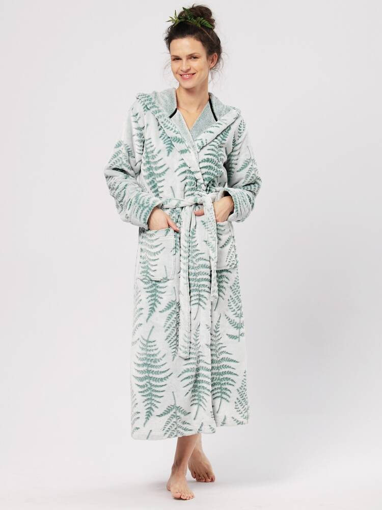 Wygodny i komfortowy szlafrok damski z miękkiej dzianiny z wzorem.
