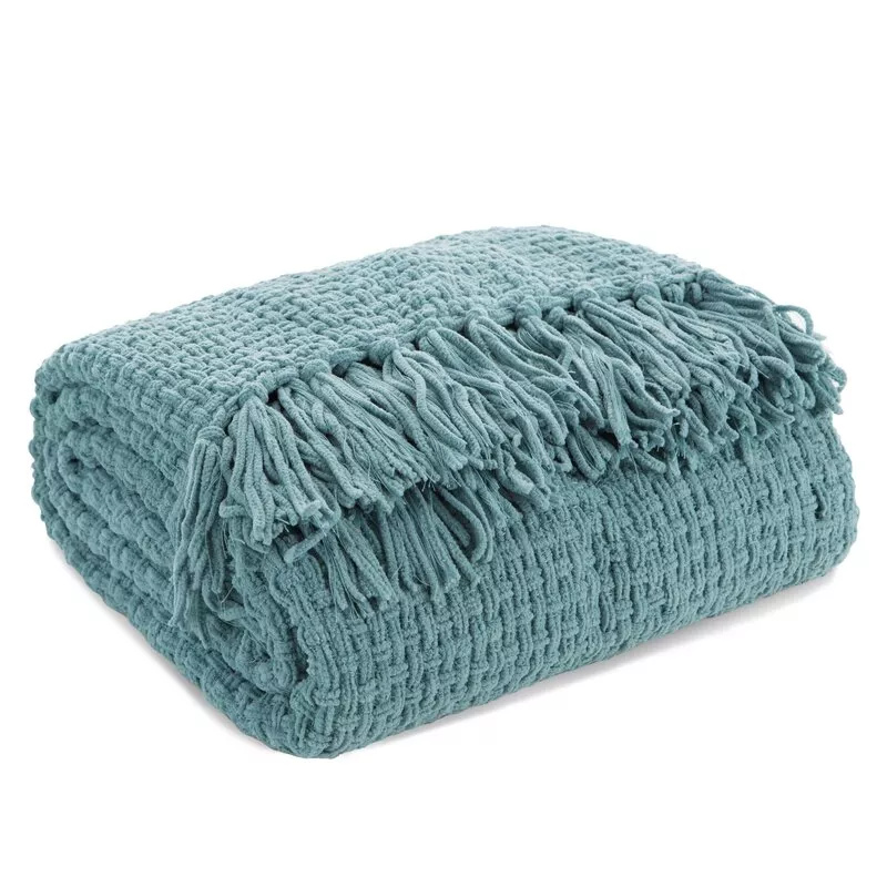 Koc tkany narzuta z frędzlami Suzi Eurofirany miętowy