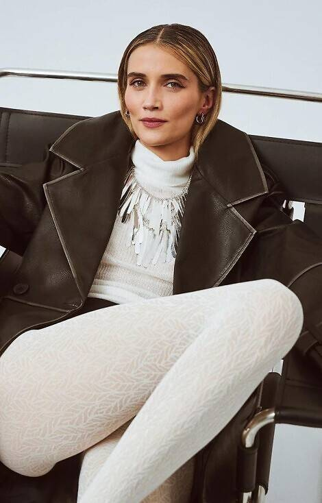 Rajstopy damskie o grubości 60 den z wyrazistym roślinnym wzorem. Optycznie wysmuklają nogi. Posiadają płaskie szwy. Bez wydzielonej części majteczkowej,