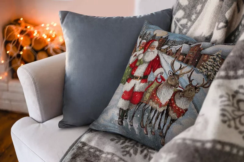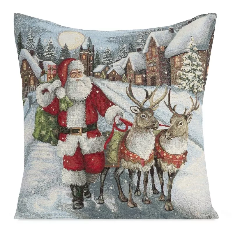 Poszewka świąteczna gobelinowa Mikołaj Renifery Chp 6130 Eurofirany szary