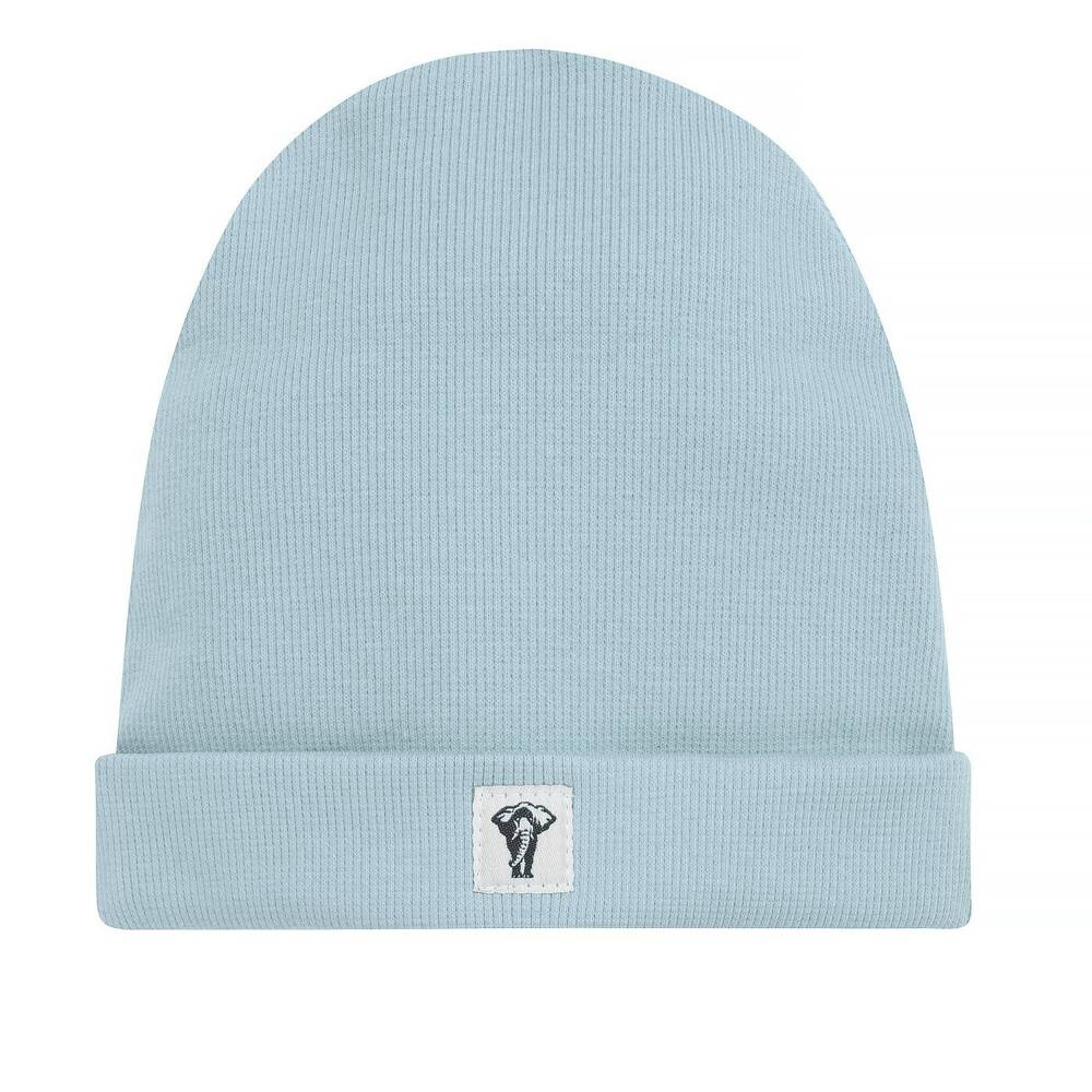 Czapka niemowlęca w modnym kolorze, uszyta z bawełny.