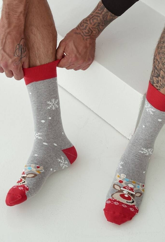 1290-017 Świąteczne Skarpety Męskie Milena -szary