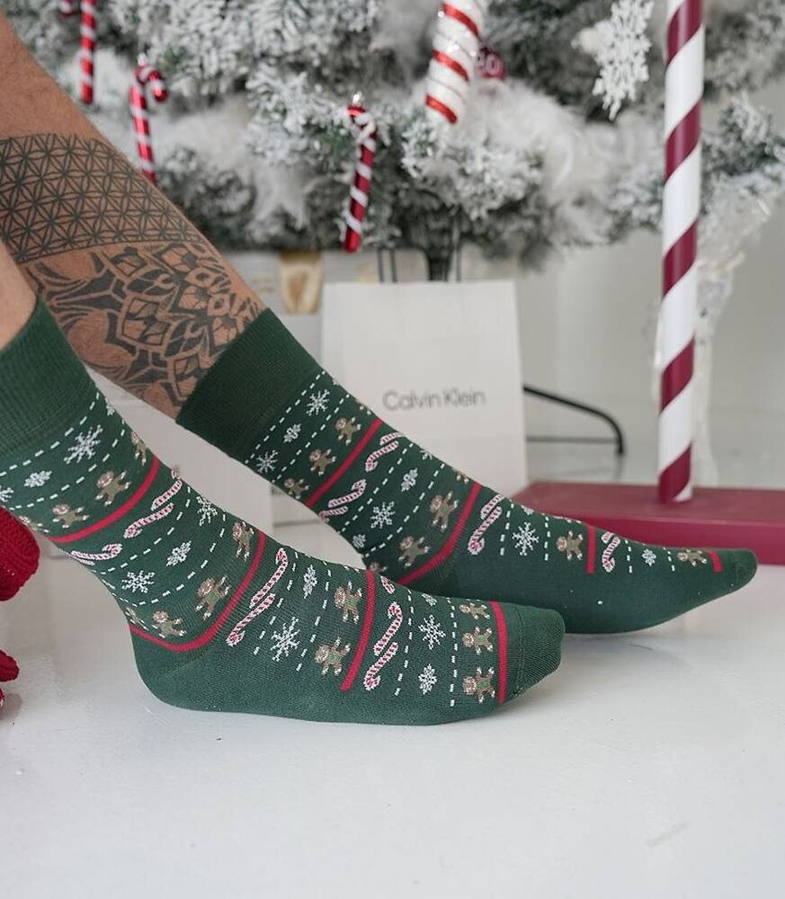 Skarpetki męskie z motywem świątecznym wykonane z wysokiej jakości bawełny.