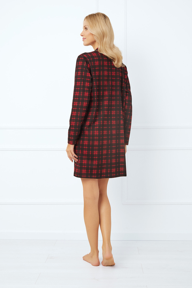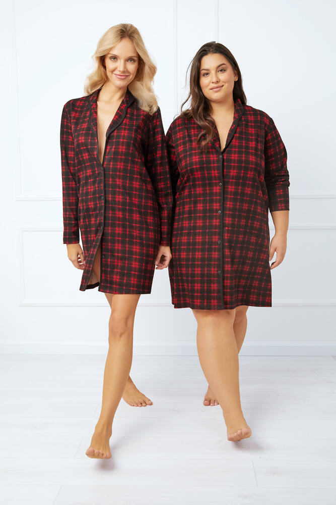 Koszula rozpinana na guziki na całej długości z przodu, w przodzie kołnierzyk z klapkami.