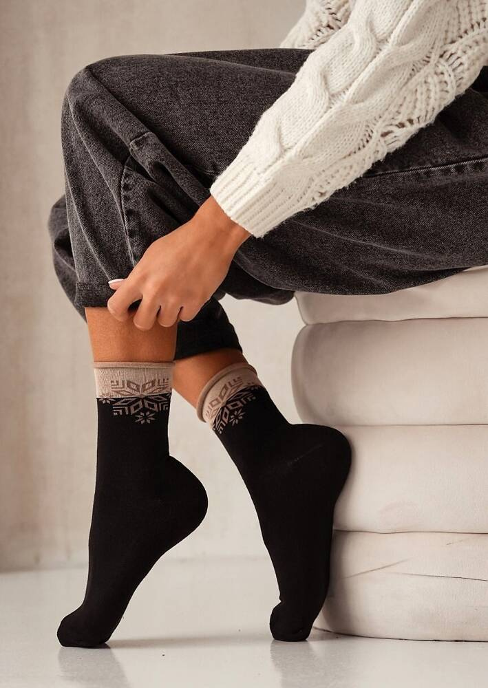 0071-007 Śnieżynka Unique Skarpety damskie Świąteczne Milena -czarny