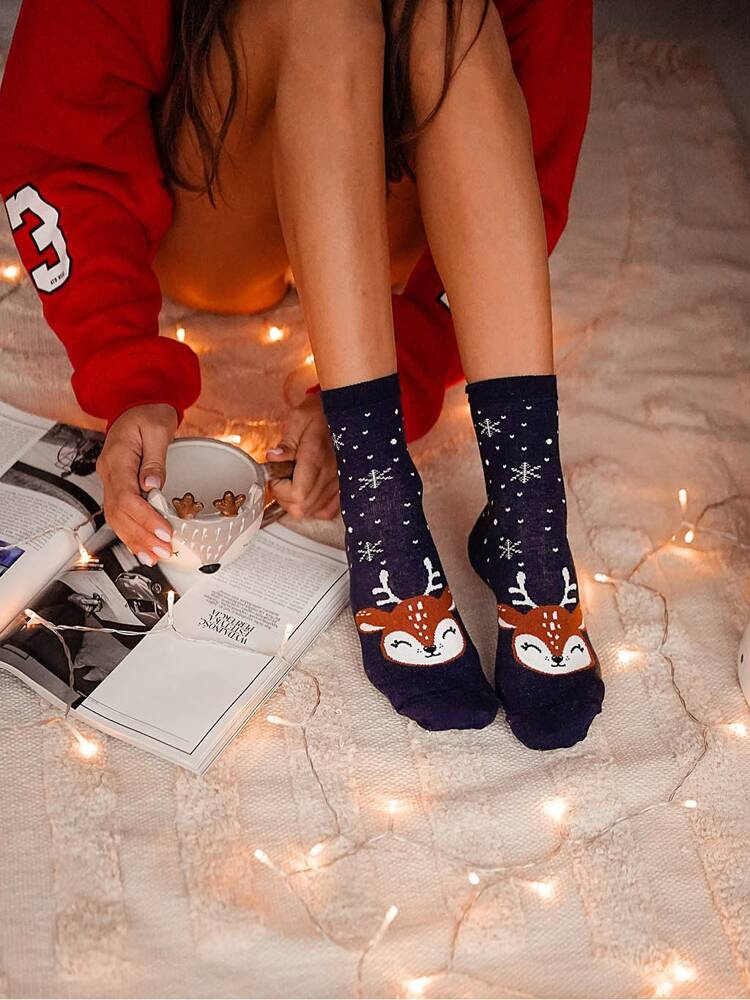 1283-009 Reniferek Świąteczne Skarpety damskie Milena - Granatowy