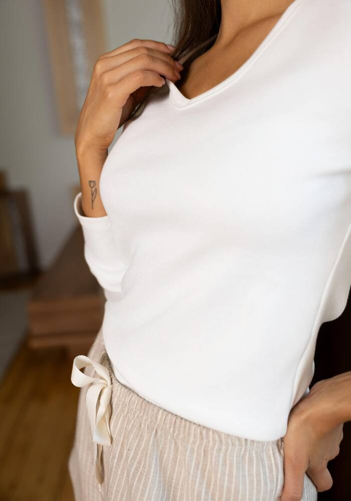 Komfortowa piżama damska uszyta z wysokogatunkowej bawełny. Koszulka z długim rękawem.