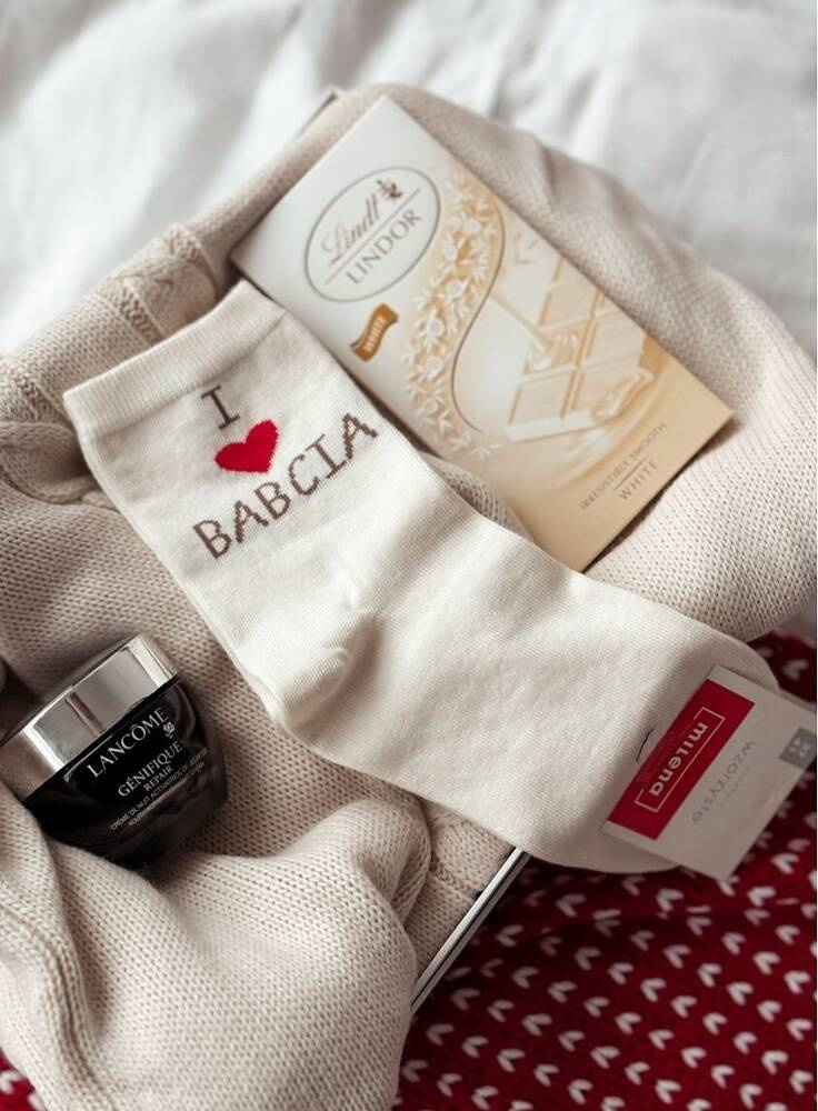 Skarpety damskie wykonane z wysokiej jakości bawełny z ozdobnym napisem z okazji "Dnia Babci"