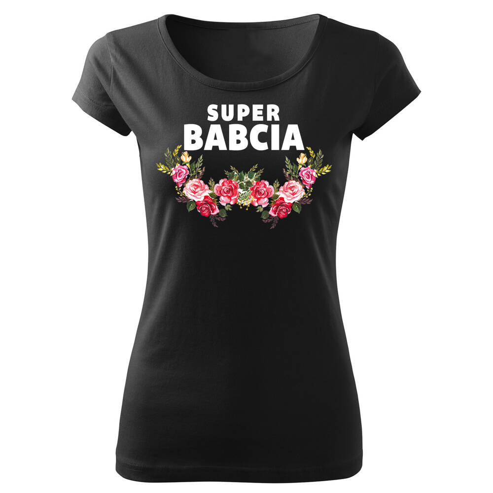 Koszulka damska "Super Babcia z kwiatami na Dzień Babci" Moocha czarny