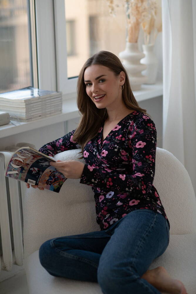 Bluzka do karmienia i ciążowa Milk Bar Milk&Love czarna w kwiaty