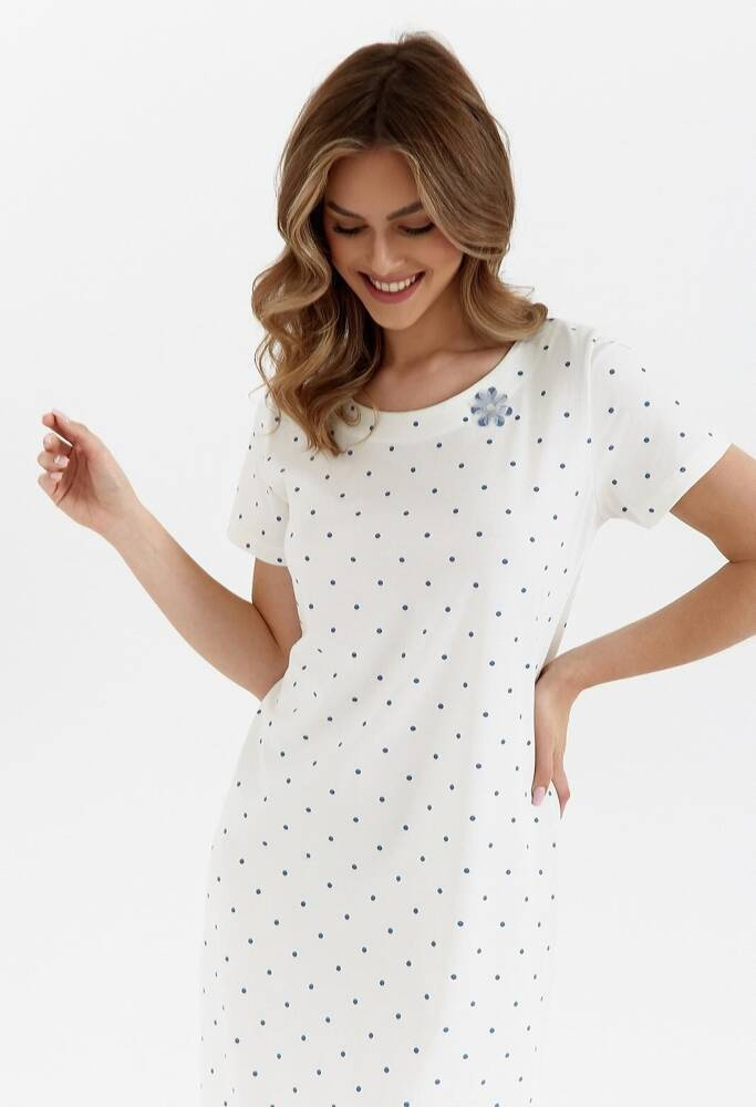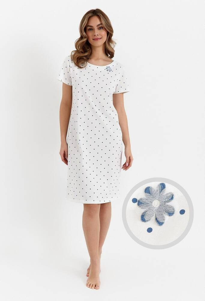 Wzorzysta koszula nocna wykonana z wysokiej jakości miłej w dotyku bawełny w kropki