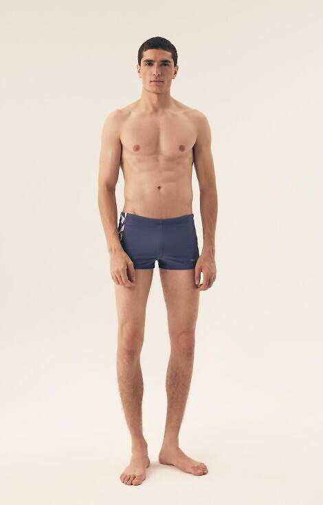 Model idealny na plażę oraz do morskich kąpieli. Bokserki kąpielowe męskie wykonane z mikrofibry. W pasie sznureczek do regulacji obwodu. Od wewnętrznej strony slipy z przewiewnej siateczki.