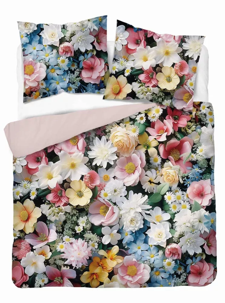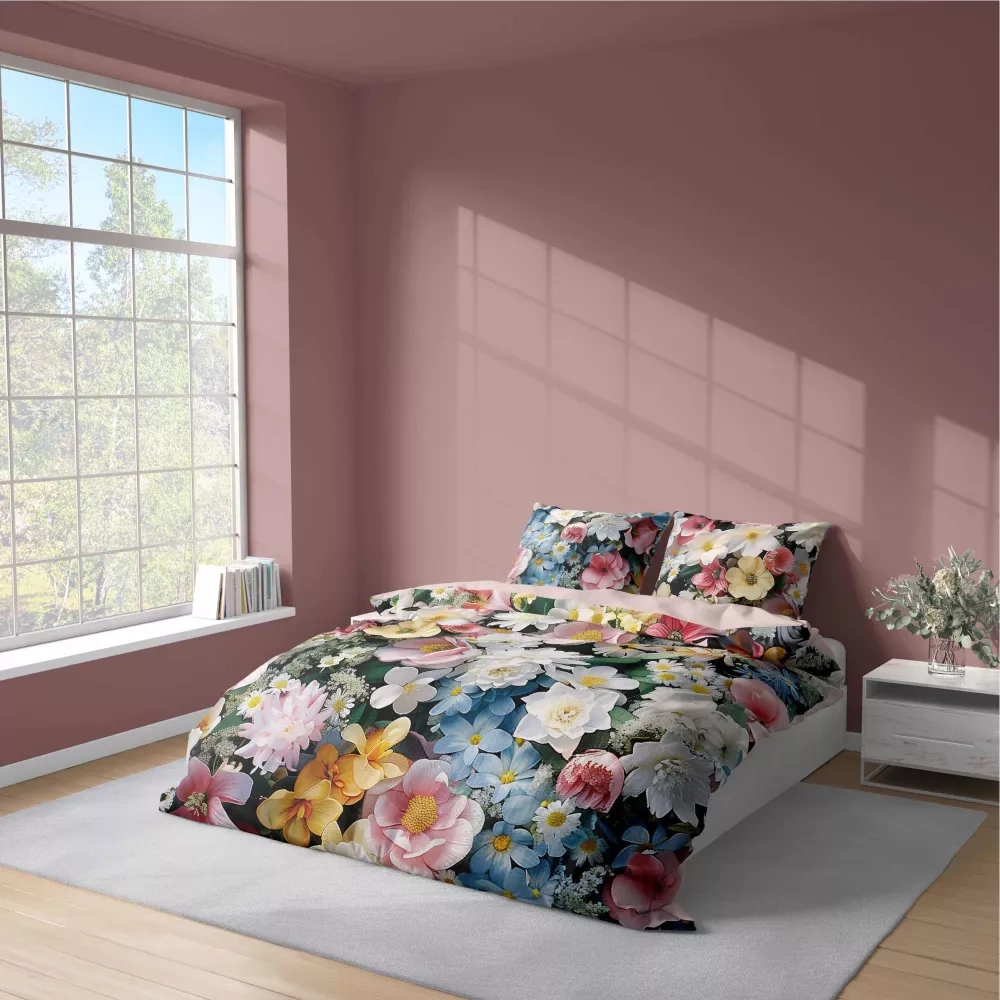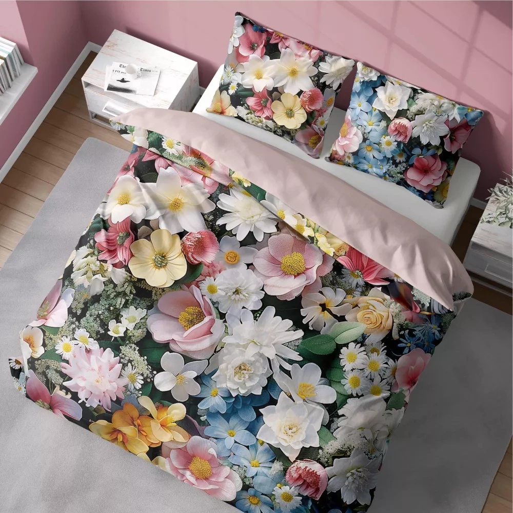 Pościel z mikrofibry kolorowa kwiaty 5313 A Detexpol różowy