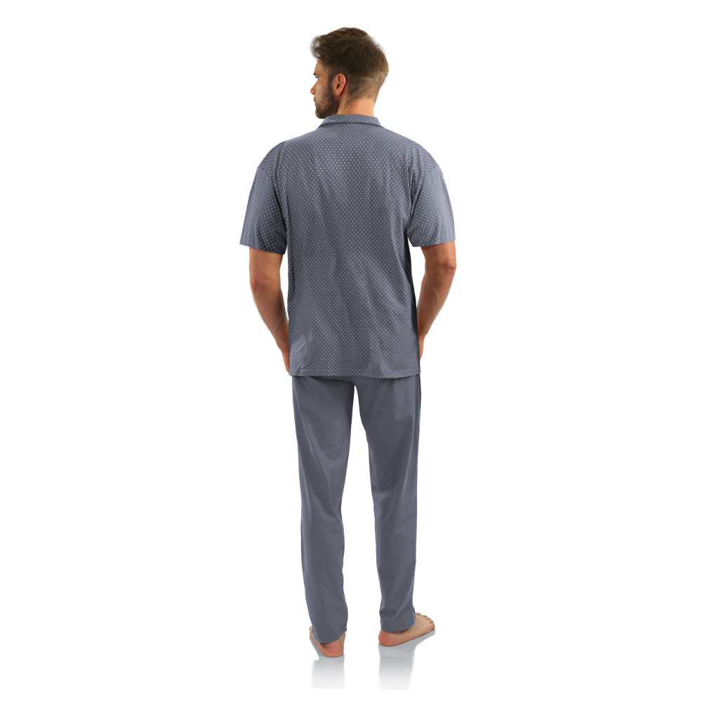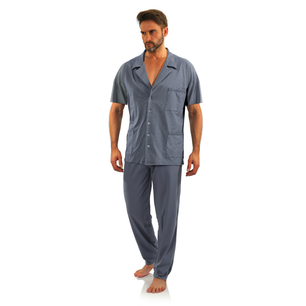Bawełniana piżama męska, rozpinana Sesto Senso - kotwiczki grafit