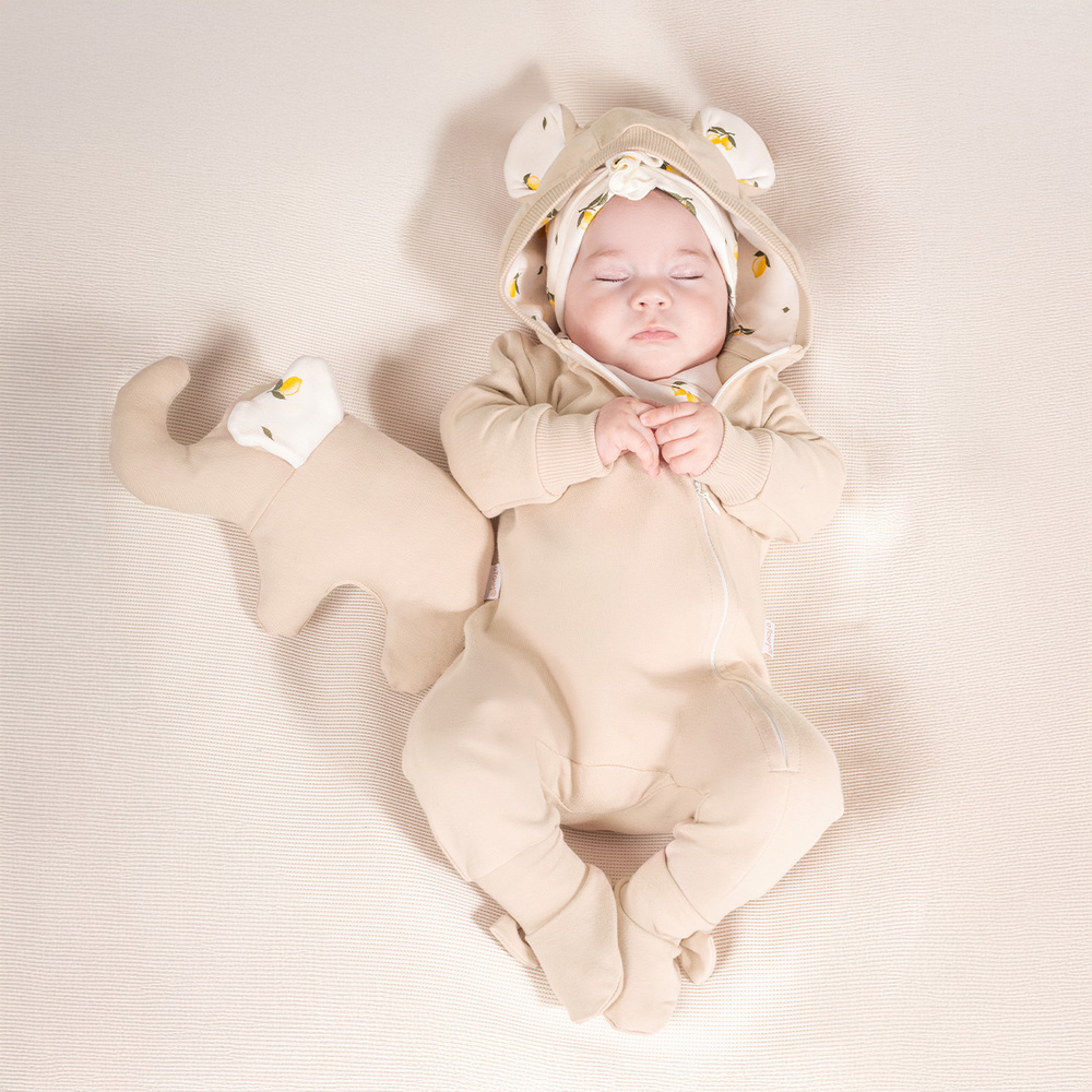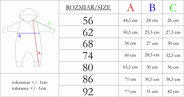 Pajac wykonany z zewnątrz z dresówki od środka posiada bawełniana podszewkę. Pajac zapinany jest na wygodny zamek - ułatwi to ubieranie. Materiał jest całkowicie bezpieczny dla skóry dziecka.