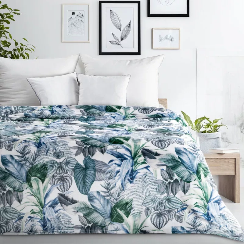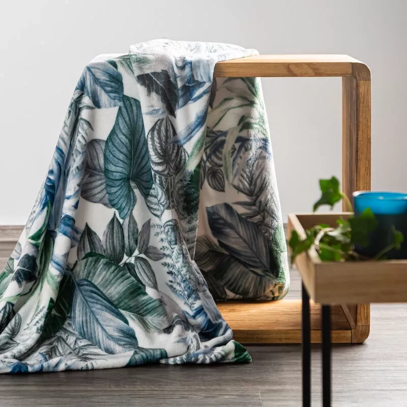 elegancki i niezwykle miękki dodatek do wnętrza, który sprawdzi się zarówno jako koc, jak i dekoracyjna narzuta na łóżko lub sofę. Wykonany z wysokiej jakości poliestru, wyróżnia się delikatnym nadrukiem w motywie liści oraz przyjemną w dotyku strukturą. Połączenie bieli i oliwkowej zieleni nadaje mu stylowego wyglądu, idealnie pasującego do nowoczesnych i klasycznych aranżacji.