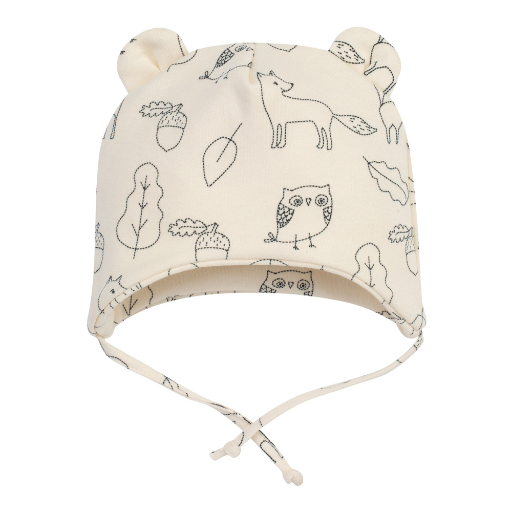 Czapka niemowlęca wiązana Secret Forest Pinokio - ecru liski
