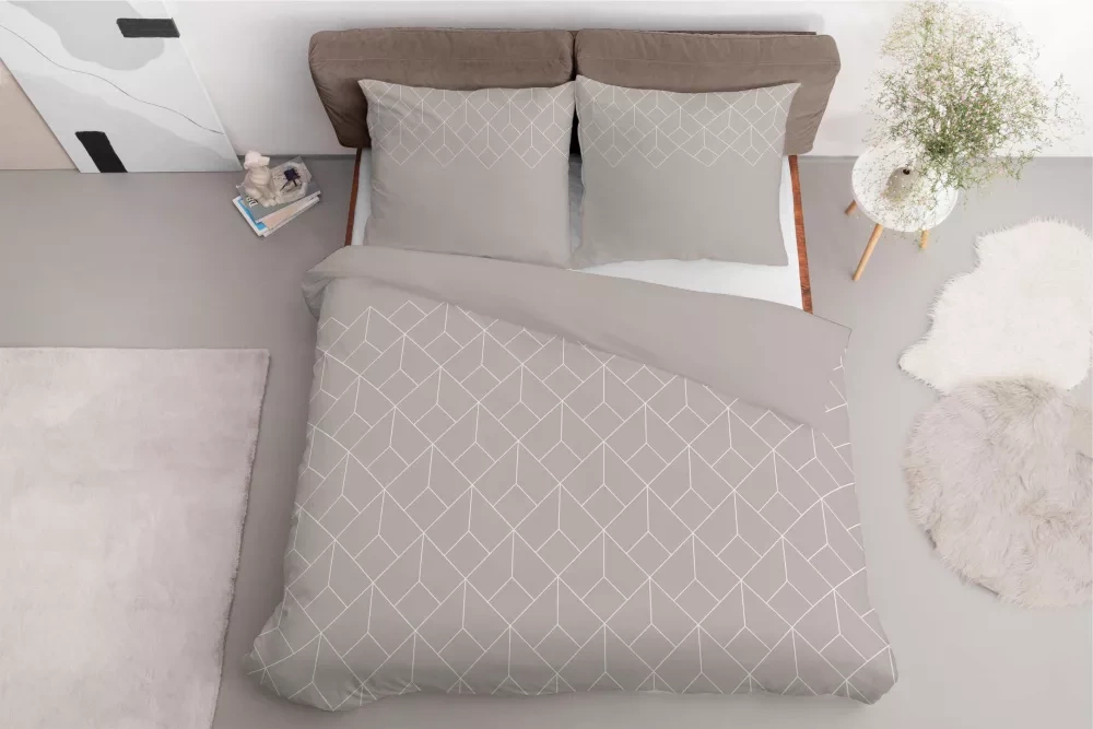 Pościel satynowa geometryczny 5327 B Detexpol beż