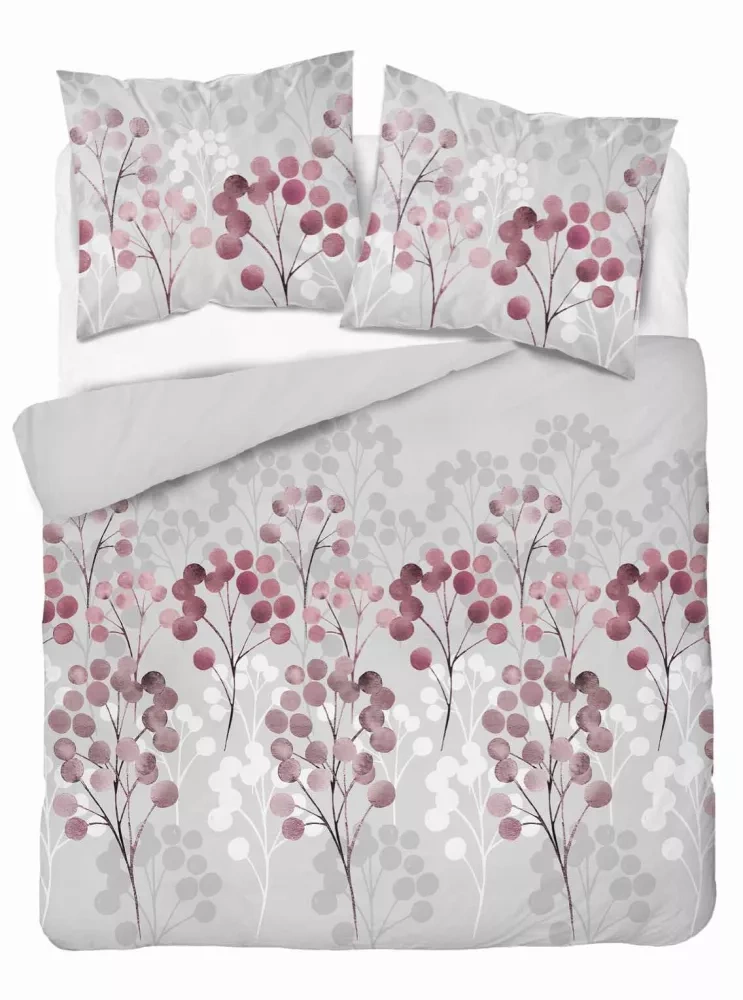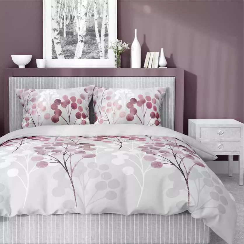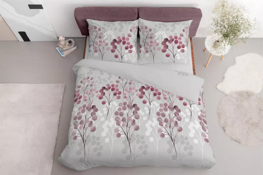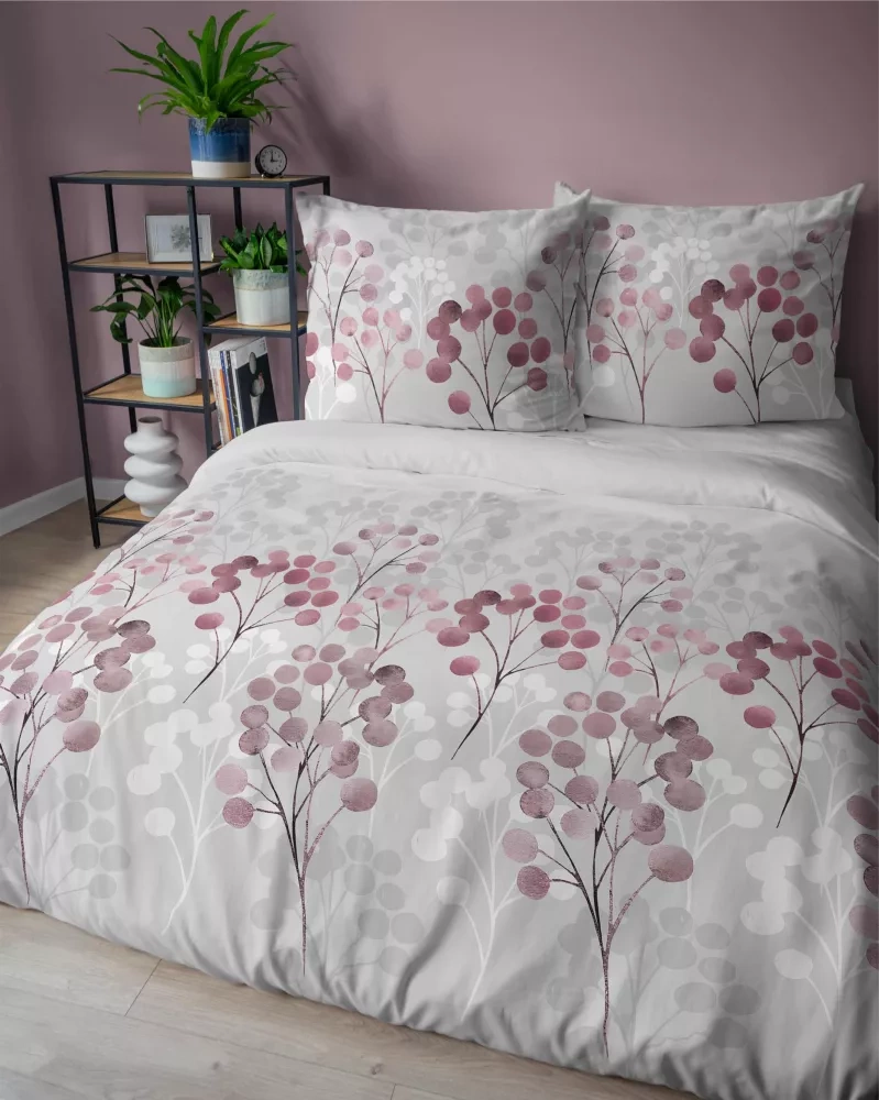 Pościel satynowa gałązki w odcieniach różu 5223 B Detexpol szary