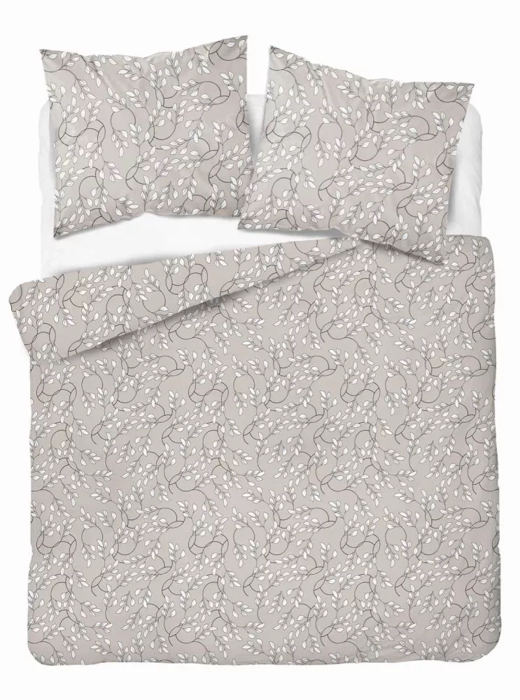 Pościel satynowa liście drobne 5217 B Detexpol beżowy