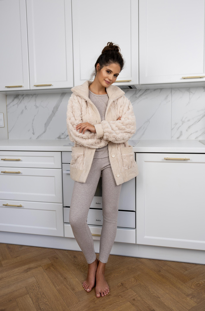 Klasyczny szlafrok damski z wysokiej jakości dzianiny typu soft. Kardigan posiada kieszenie boczne. Model idealnie komponuje się z koszulą bądź piżamą, dostępną w naszej kolekcji bielizny nocnej. W szlafroku możesz zachwycać i olśniewać swoją urodą, nawet jeśli tylko wybierasz się w nim do sypialni.