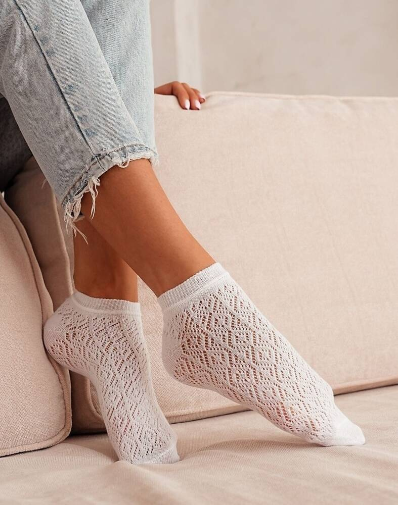 Ażurowe stopki damskie wykonane z wysokiej jakości bawełny z nieuciskającym ściągaczem.