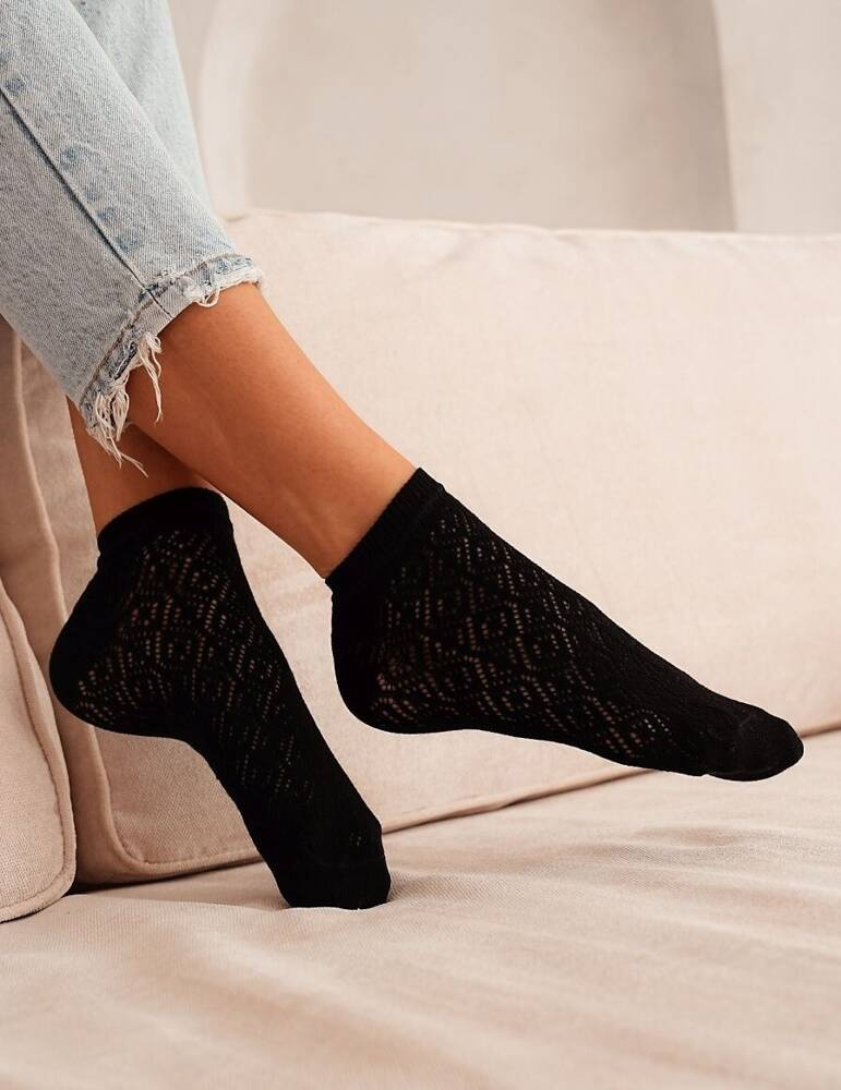 Ażurowe stopki damskie wykonane z wysokiej jakości bawełny z nieuciskającym ściągaczem.