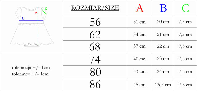 Piękna sukienka na wielkie wyjścia i specjalne okazje dla dziewczynki, uszyta z wysokogatunkowej bawełny. Produkty wykonane z materiału bezpiecznego dla skóry dziecka. Sukienko-body zdobi tiulowa spódnica. Rozpinane jest na bezniklowe napy na ramionach oraz w kroku.