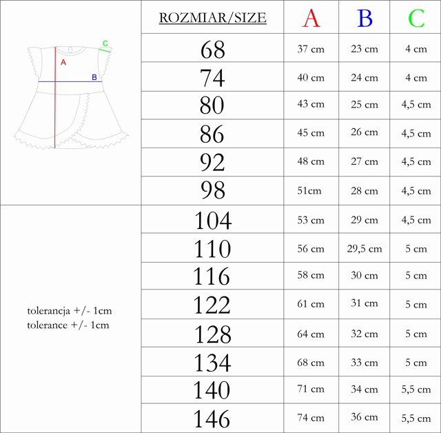 Modna sukienka z krótkim rękawem dla dziewczynki. Fason zdobią rękawki zakończone falbanką, Dolna część sukienki została zmarszczona na linii talii. Na tyle zastosowano zapięcie typu łezka, zapinane na bezniklowego napa. Materiał jest całkowicie bezpieczny dla skóry dziecka.