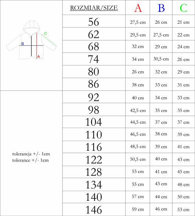 Rozmiar | Obwód klatki piersiowej | Obwód pasa |