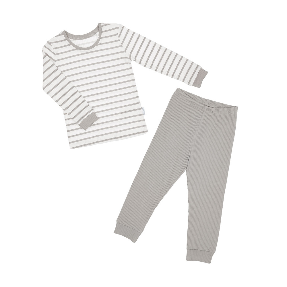 Wygodna piżamka składająca się z bluzeczki oraz spodenek. Spodenki wyposażone są w delikatną gumkę, która sprawia, że ubranko pozostaje na swoim miejscu. Piżamka sprawdzi się w czasie snu nieco większych maluchów.