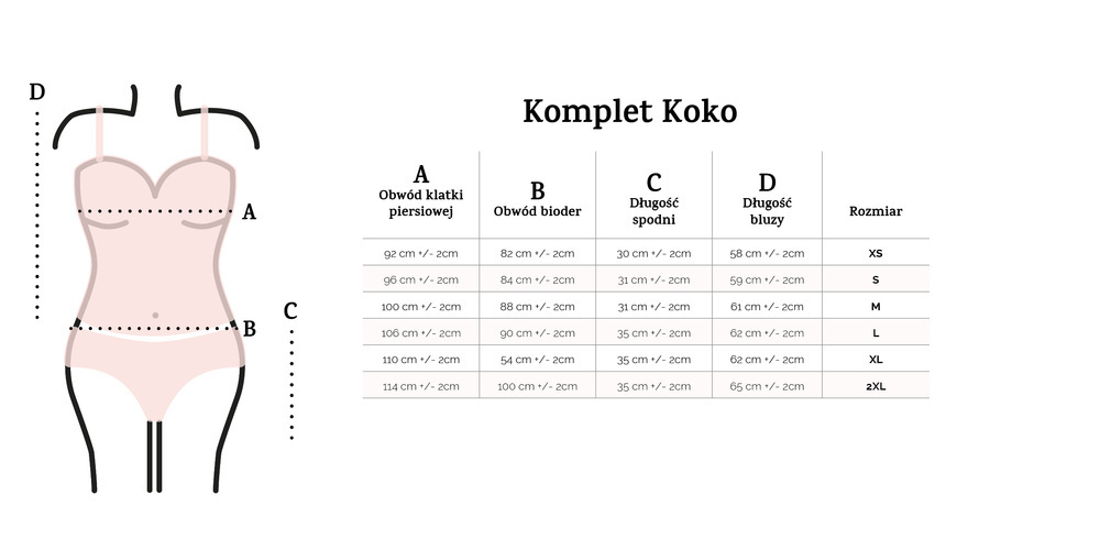 | Rozmiar | Obwód klatki piersiowej | Obwód bioder |