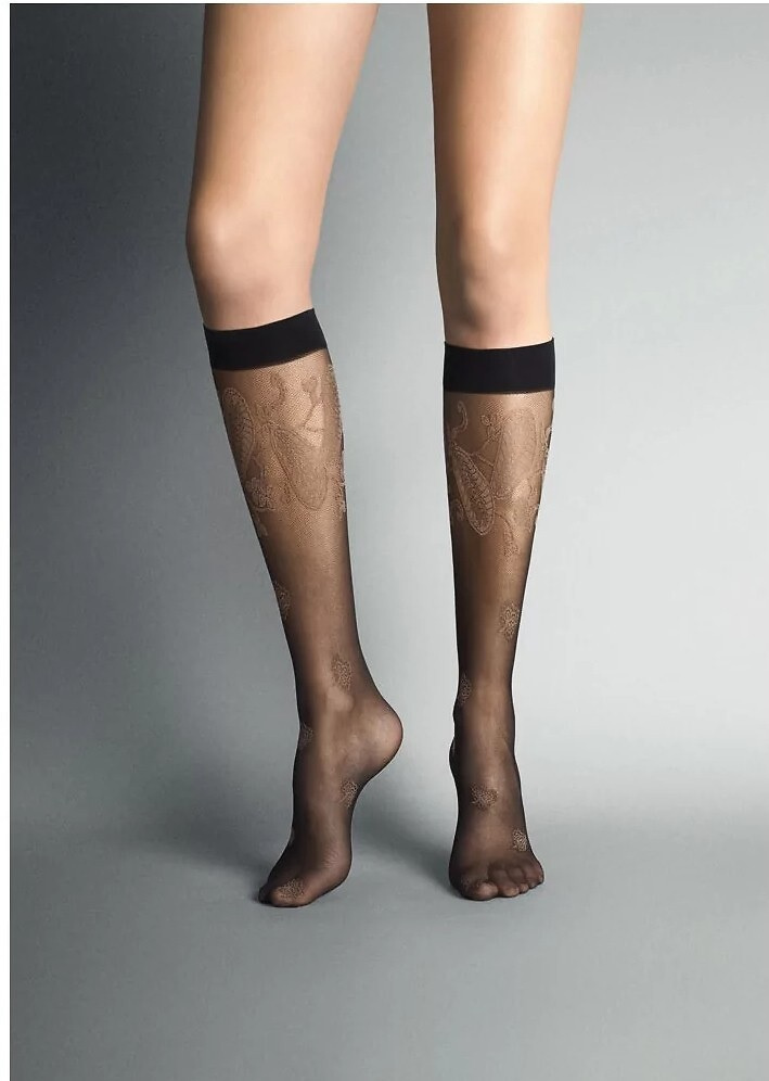 Cienkie podkolanówki damskie o splocie mikrokabaretki.