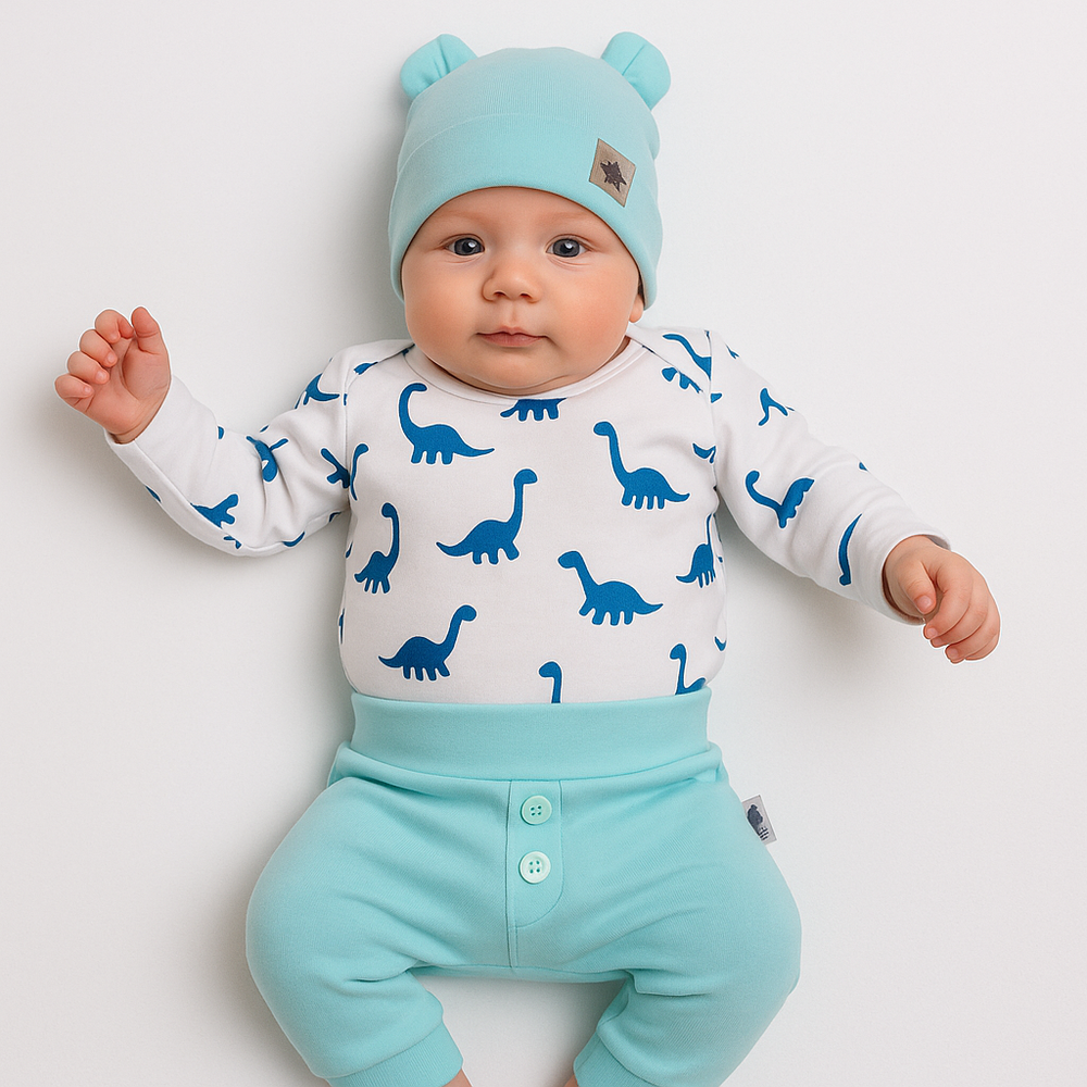 Mamy do zaoferowania komplet niemowlęcy, który składa się z body, spodni i czapki. Ubranka zostały wykonane z wysokiej jakości 100% bawełny.