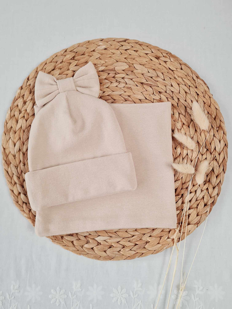 Czapka z kokardką 15K prążek podwójna Marija - beżowy