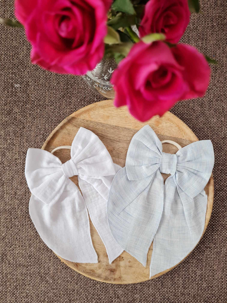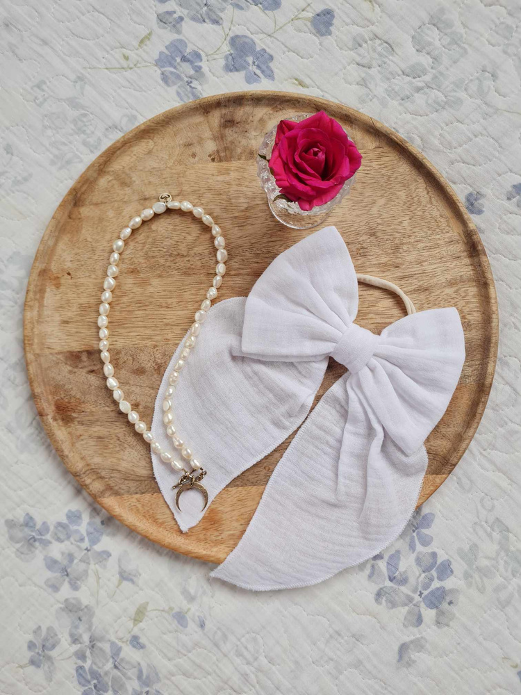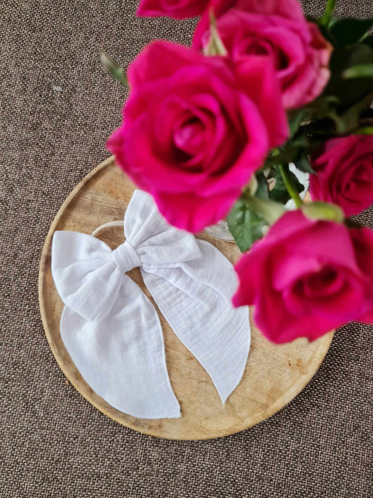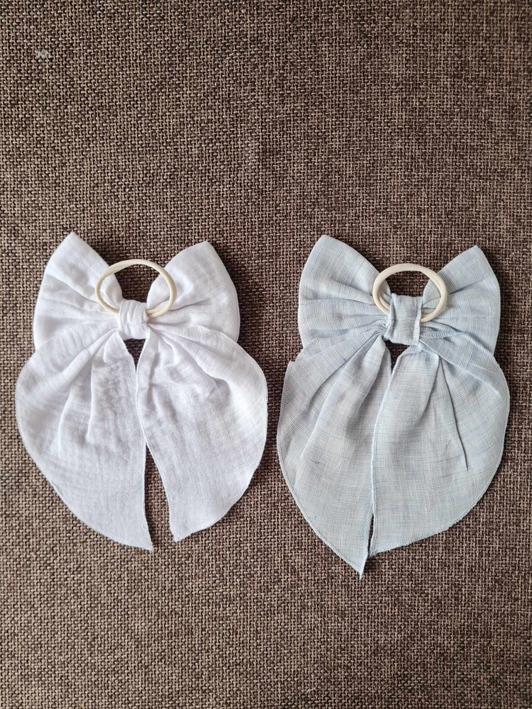 Muślinowa gumka do włosów z dużą kokardą. Można łączyć z różnymi stylizacjami, dzięki czemu za każdym razem uzyskasz inny look.