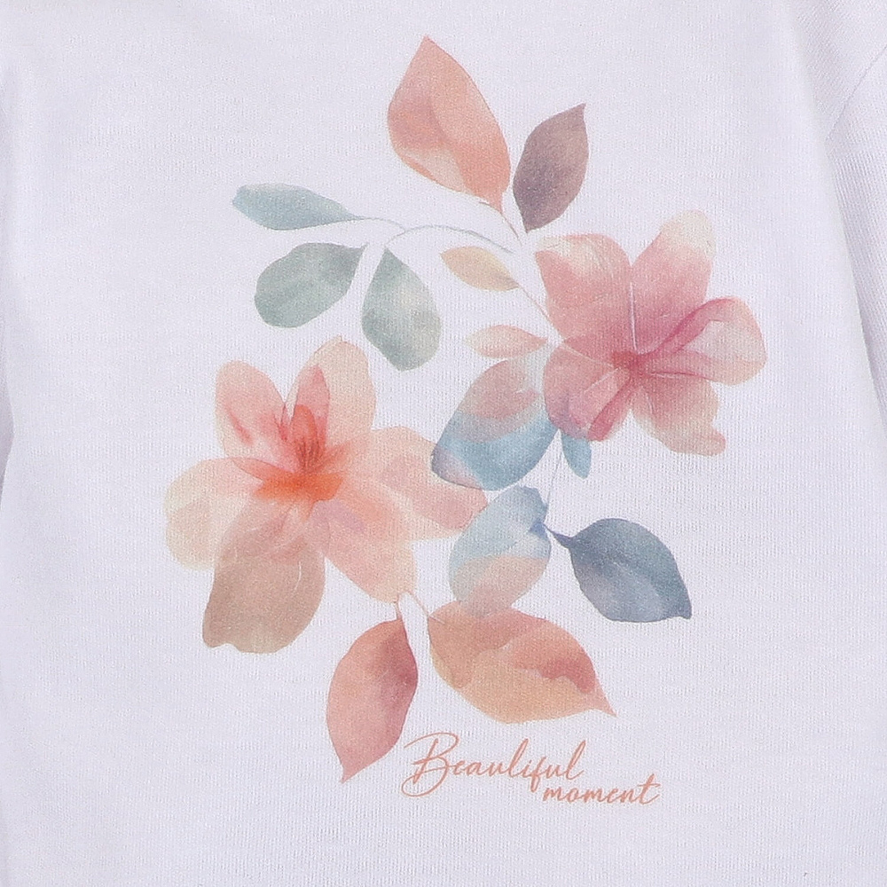 Body z bawełny organicznej Kolorowe kwiatki Nini biały
