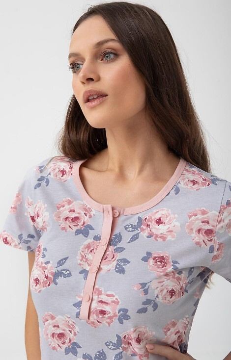 Koszula nocna z  krótkim rękawem  wykonana z wysokiej jakości wyjątkowo miłej w dotyku bawełny.