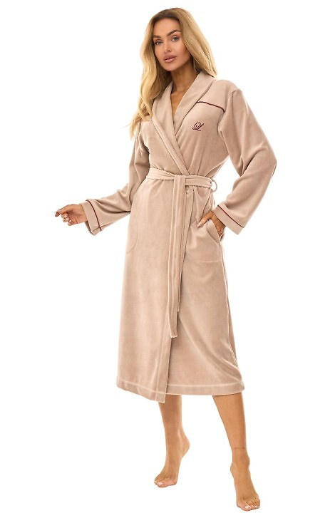 Długi Szlafrok Damski 2508 L&L - beżowy