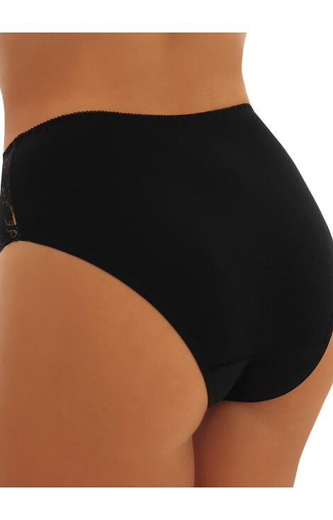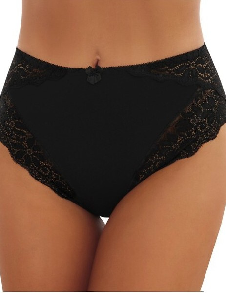 Bawełniane figi damskie z wysoką linią talii. Ozdobione wstawkami koronki