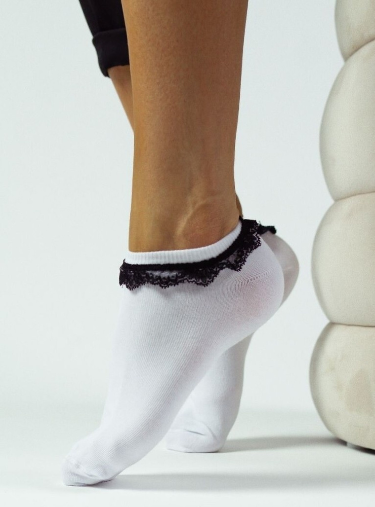 Bawełniane stopki damskie z ozdobnym koronkowym ściągaczem.