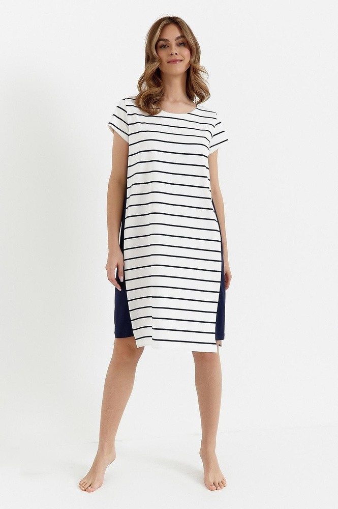 • Damska koszula nocna Cana 449 w kolorze ecru. Bawełniana, z krótkim rękawem, przewiewna i wygodna – idealna do spania i relaksu.