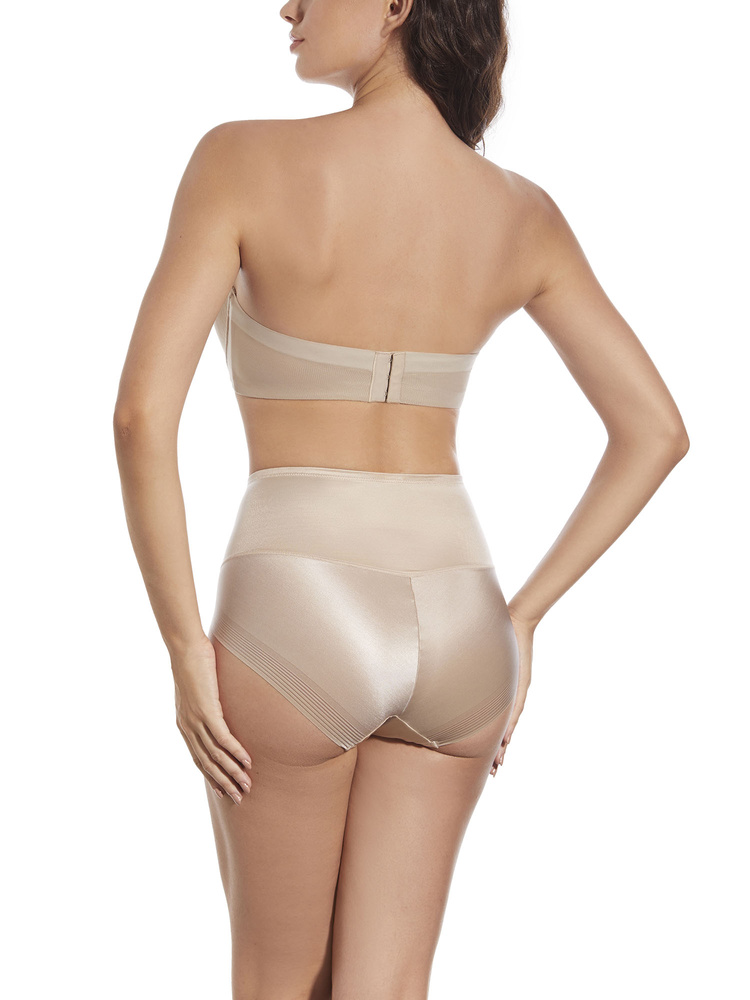 Zalety: formowane miseczki, fiszbiny, silikonowe wykończenie, odpinane ramiączka, elastyczne dopasowanie, idealny pod sukienki bez ramiączek